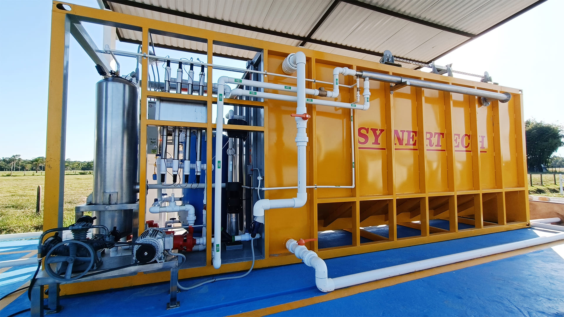 Las plantas compactas son diseñadas para acoplarse a cualquier tipo de tratamiento de aguas aportando importantes ventajas. Estas unidades, tanto en la versión tipo paquete como modular, son pre-ensambladas en el taller lo que minimiza la obra civil y acondicionamiento del terreno en la ubicación futura de la planta.