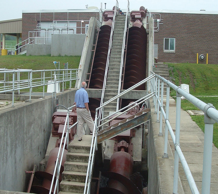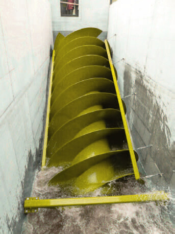 Los tornillos de arquimedes cerrados proporcionan un medio para instalar un conjunto de bomba de tornillo en tanques existentes con un mínimo de trabajo estructural de concreto. Se proporcionan respiraderos en el tubo estacionario para permitir la entrada y salida del aire.