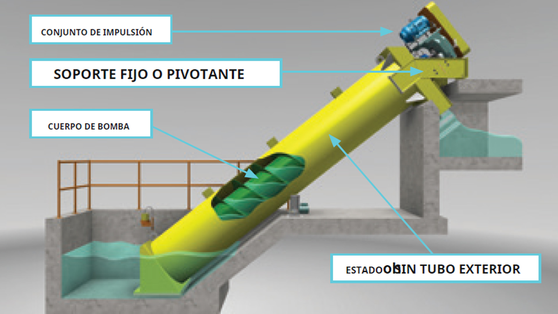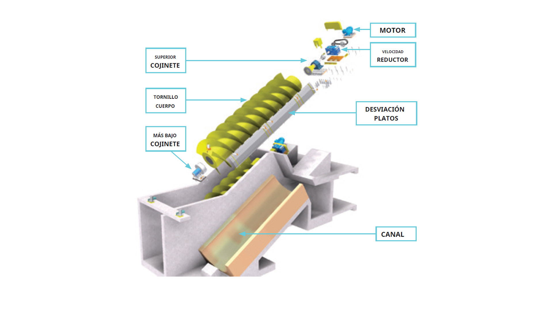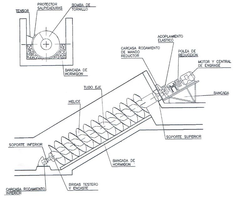 El tornillo de Arquímedes Synertech está construida en su conjunto por los siguientes elementos: