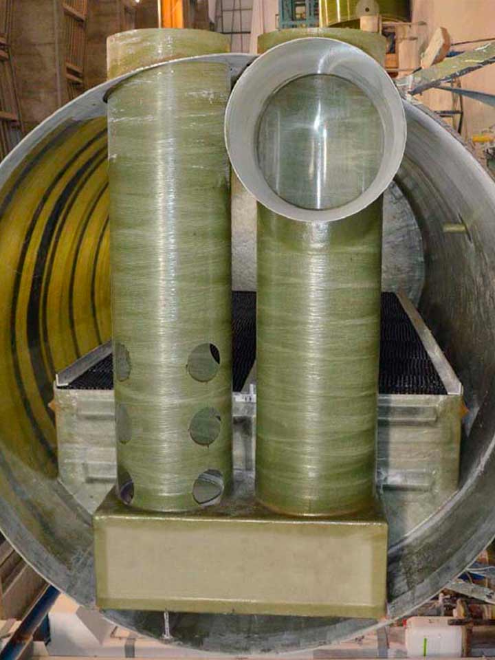 Contamos con linea de referencias en separadores de hidrocarburos construidos en fibra de vidrio, con desarrollos como: tratamiento bifasico y tratamiento trifasico. Su funcionamiento es importante en el proceso de separación de agua, gases, aceites hidrocarburados. Recordemos que los pozos, son una mezcla de crudo, agua, gas y arena. Los separadores de hidrocarburos diseñados por SynerTech están fabricados en PRFV (poliéster reforzado con fibra de vidrio).